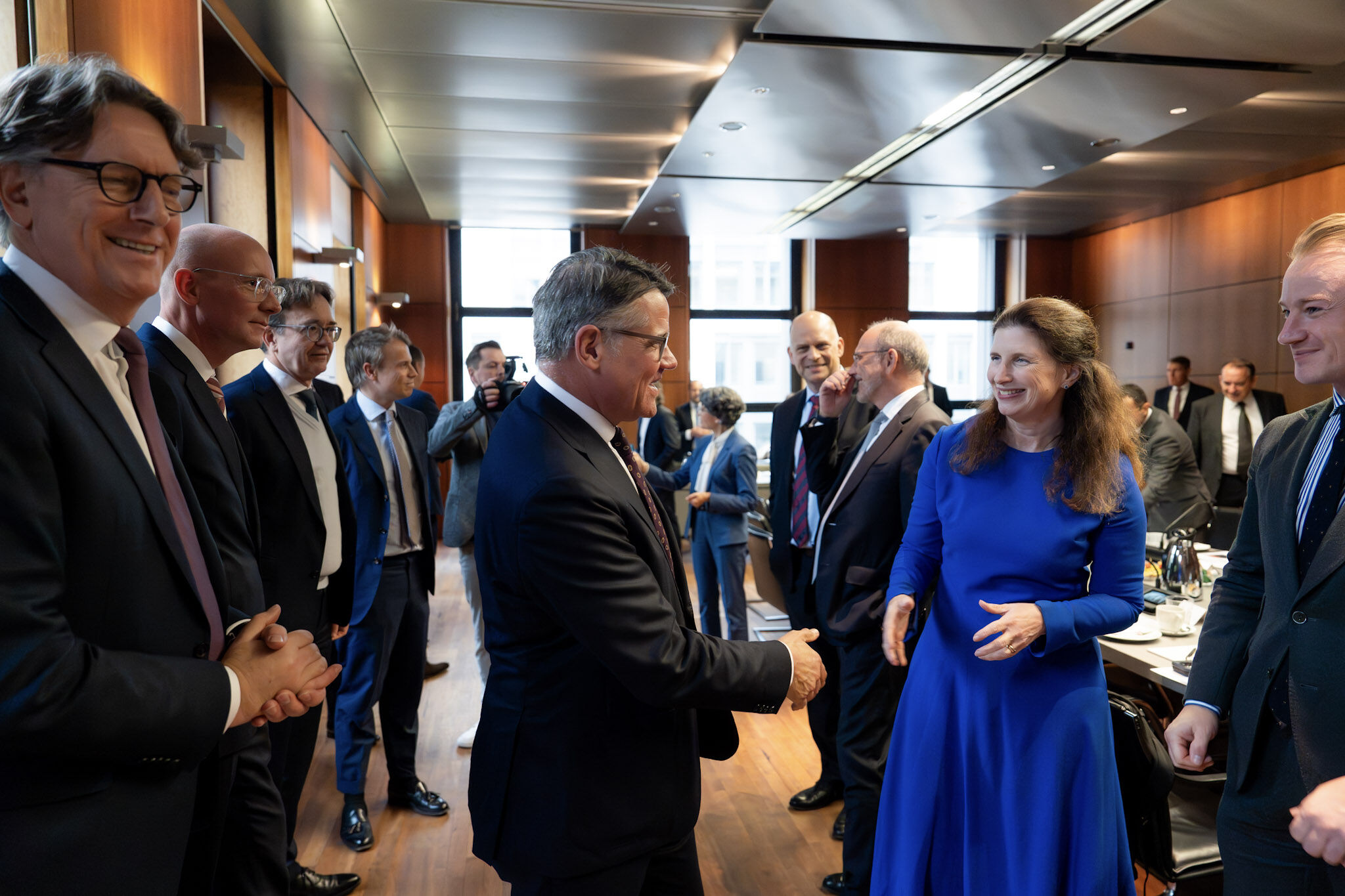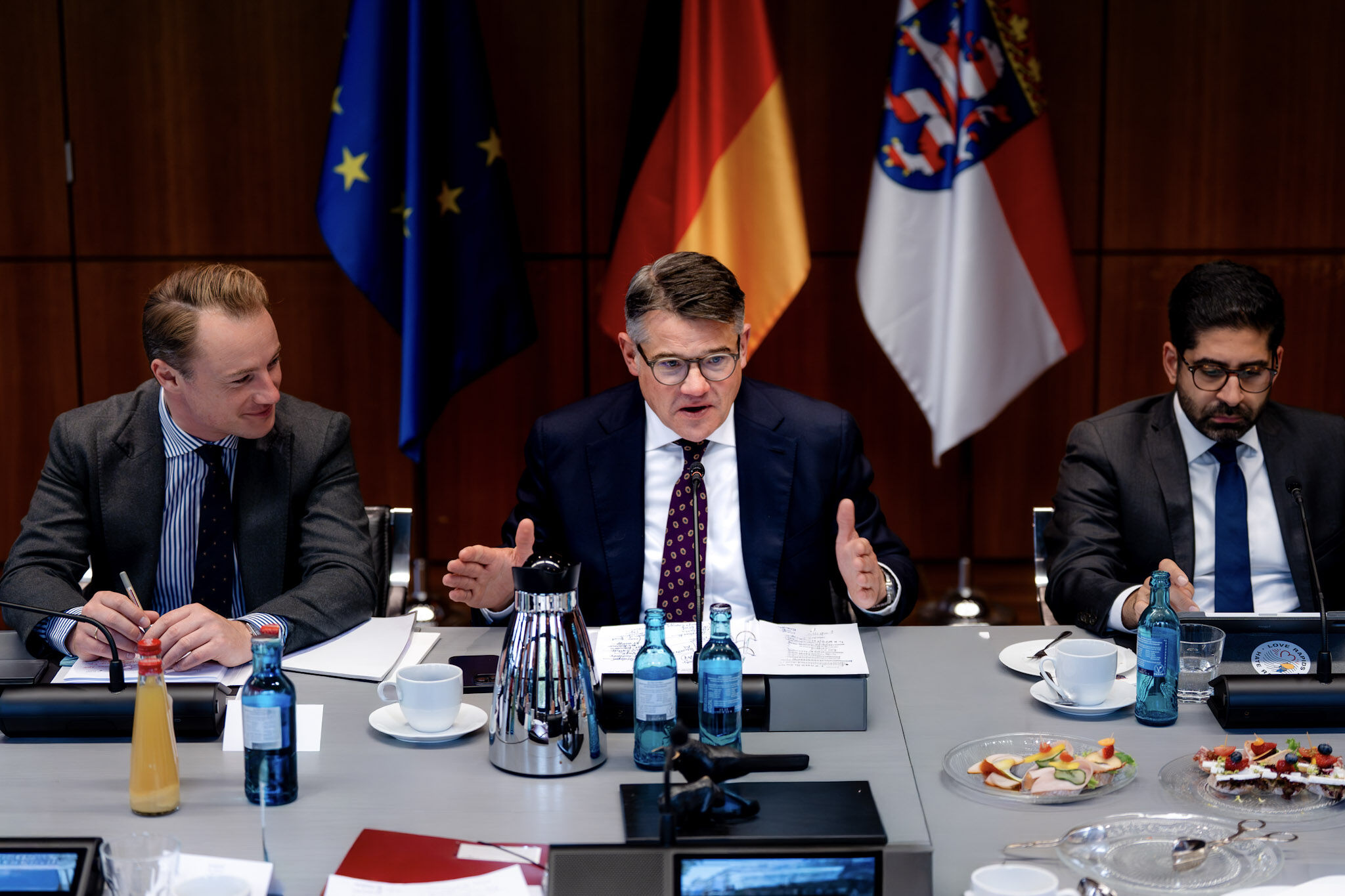 Unter Leitung von Ministerpräsident Rhein haben sich am Donnerstag, 25. September 2025, zum zweiten Mal Mitglieder der Landesregierung mit führenden Vertreterinnen und Vertretern der Finanzbranche in Frankfurt getroffen, um eine gemeinsame Finanzplatzstrategie zu verabschieden. Das Gremium aus Politik und Wirtschaft will die Wettbewerbsfähigkeit Frankfurts im globalen Finanzwesen stärken.